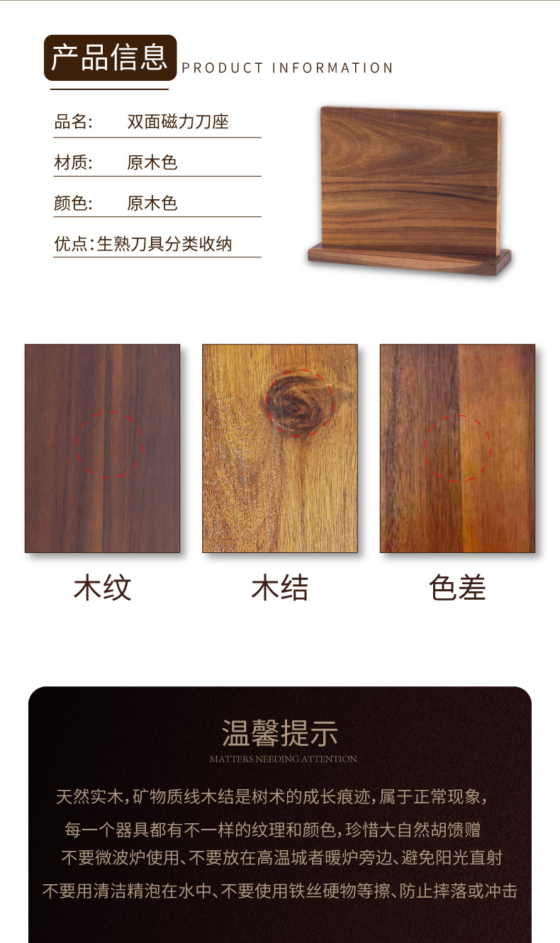 厨房磁吸菜刀架刀多功能刀座实木刀具置物架生熟两用磁力架子收纳
