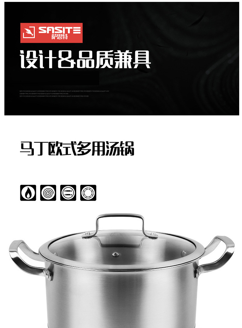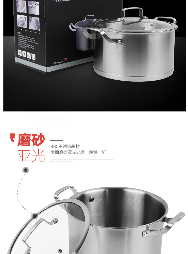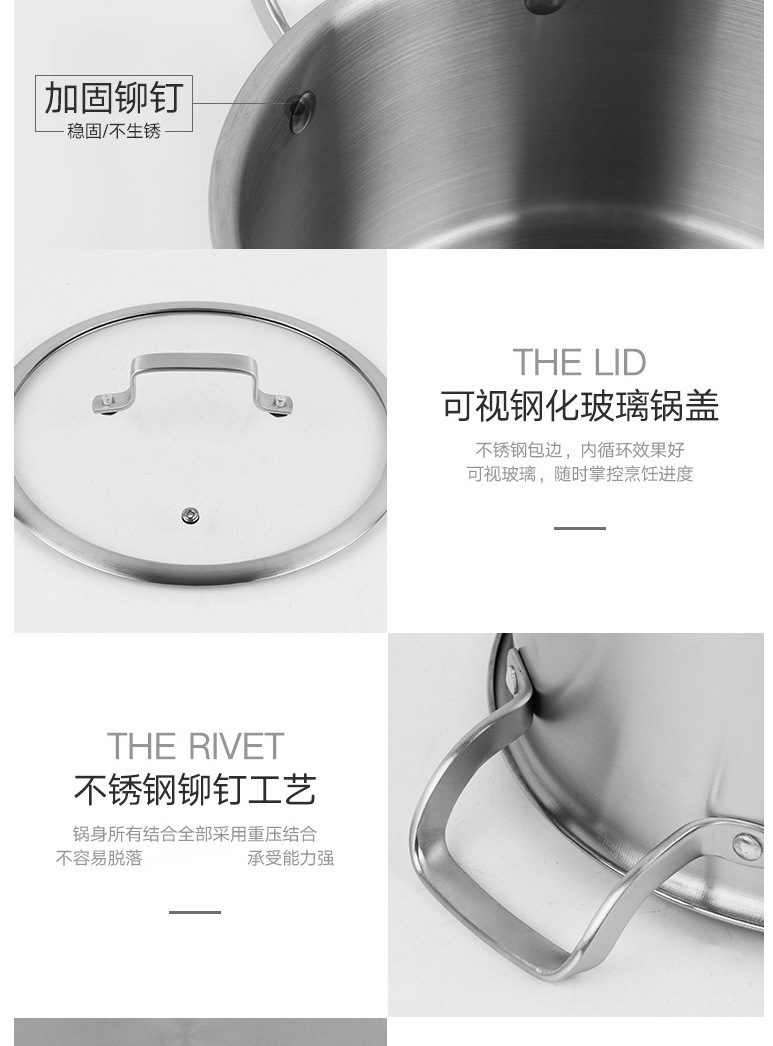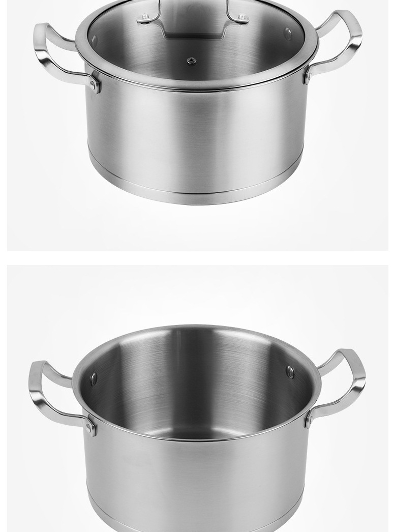 厂家直供430不锈钢汤锅复合底欧式双耳汤锅玻璃可视锅盖不沾焖锅