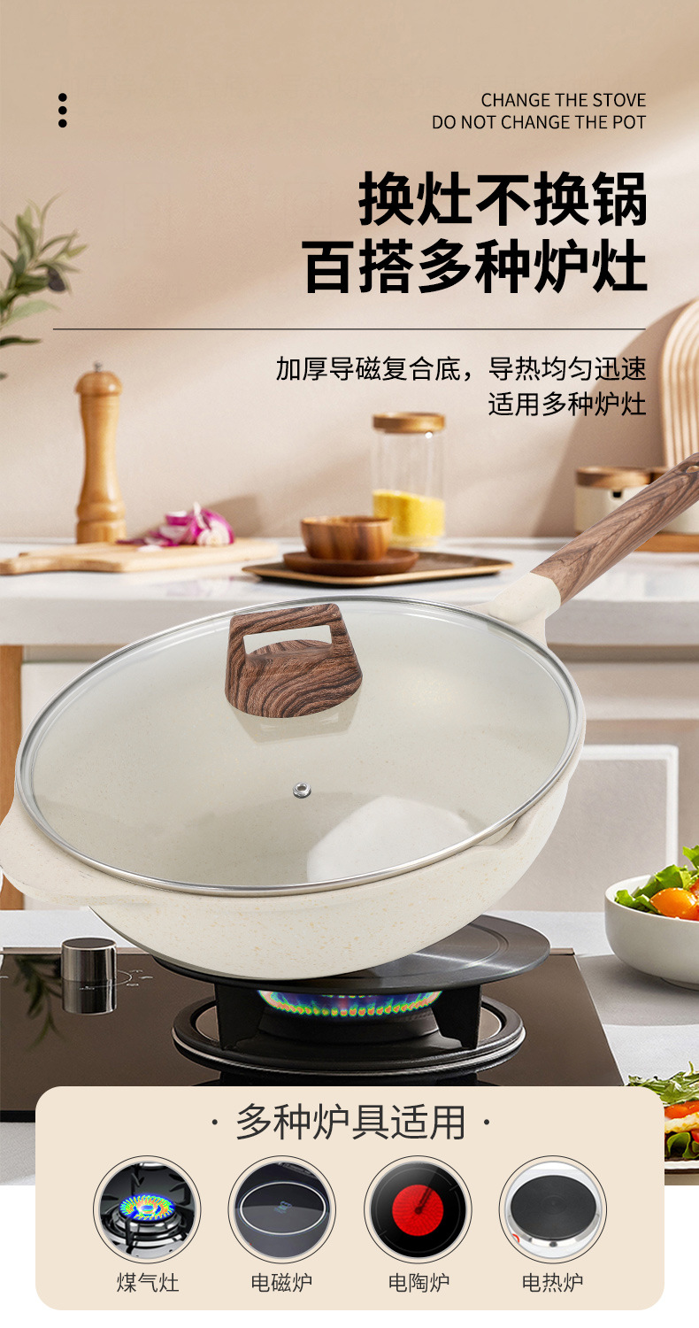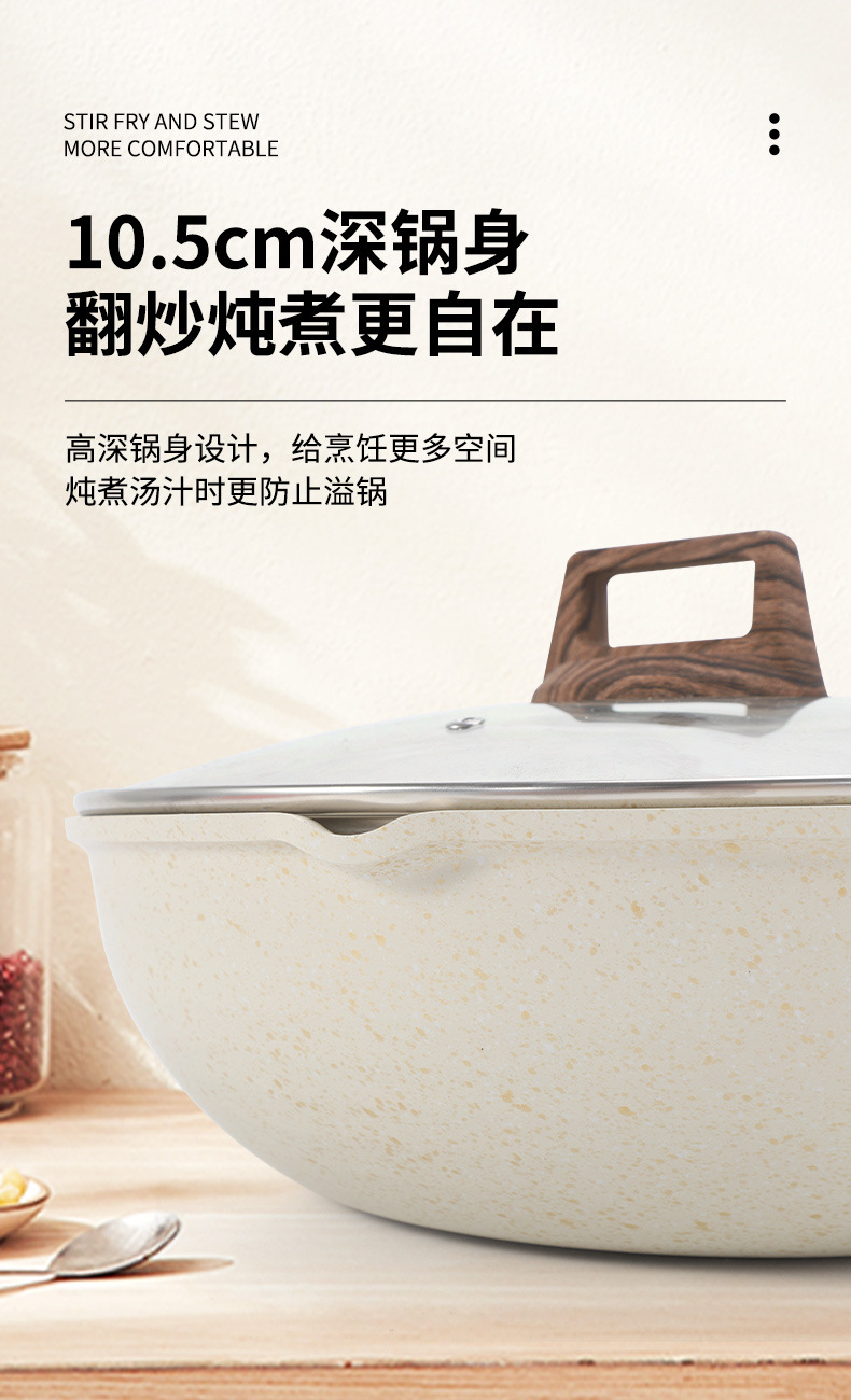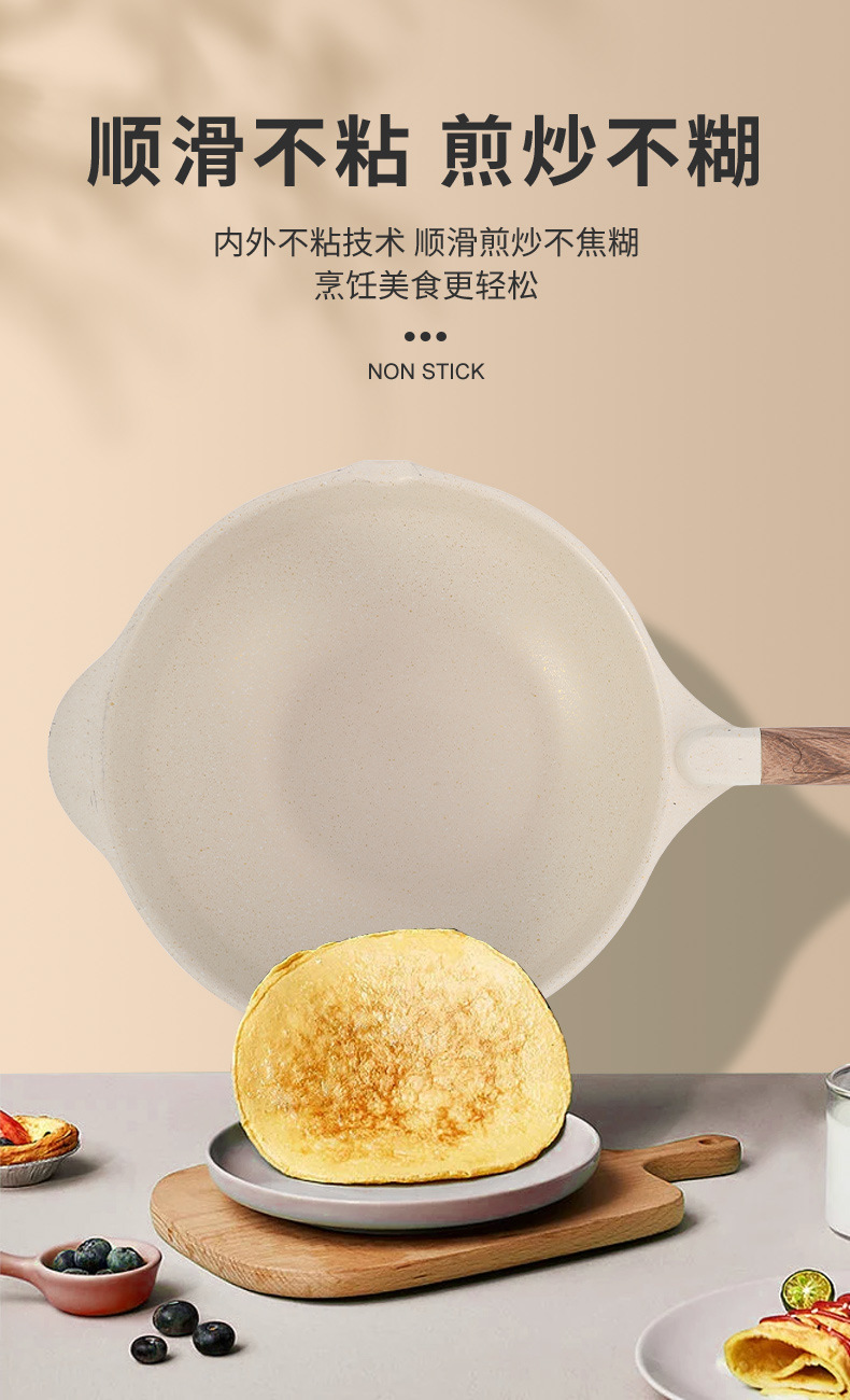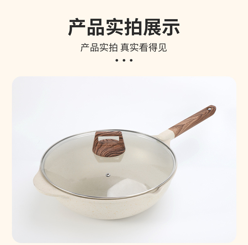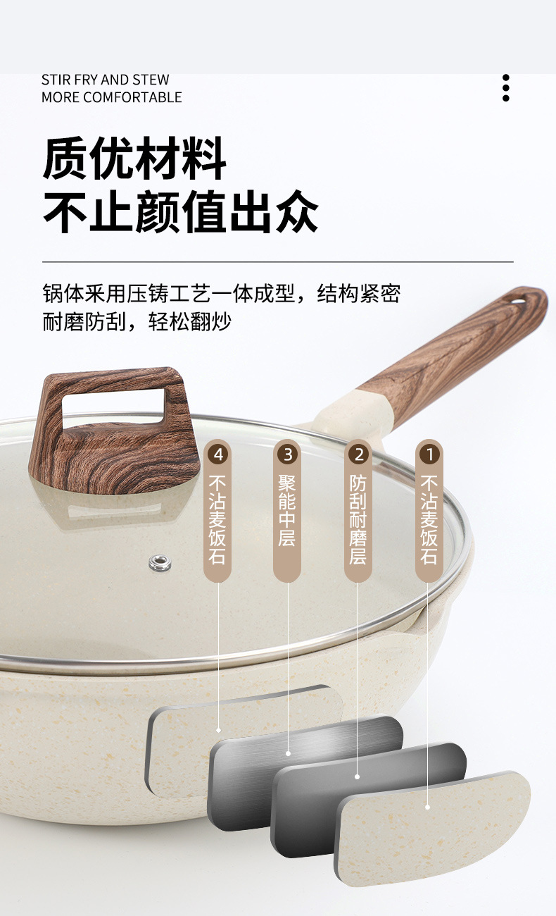 麦饭石不粘锅炒锅压铸锅厂家直供高颜值轻量级铝制平底炒菜