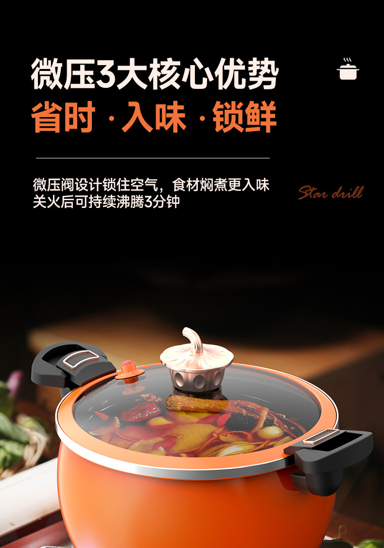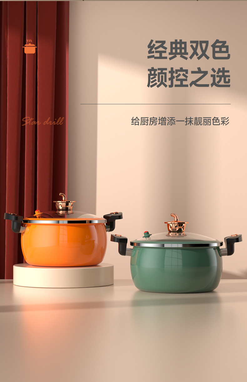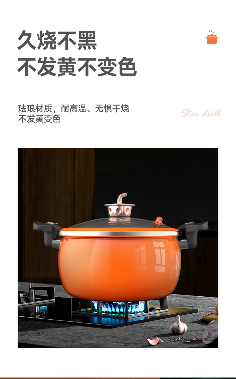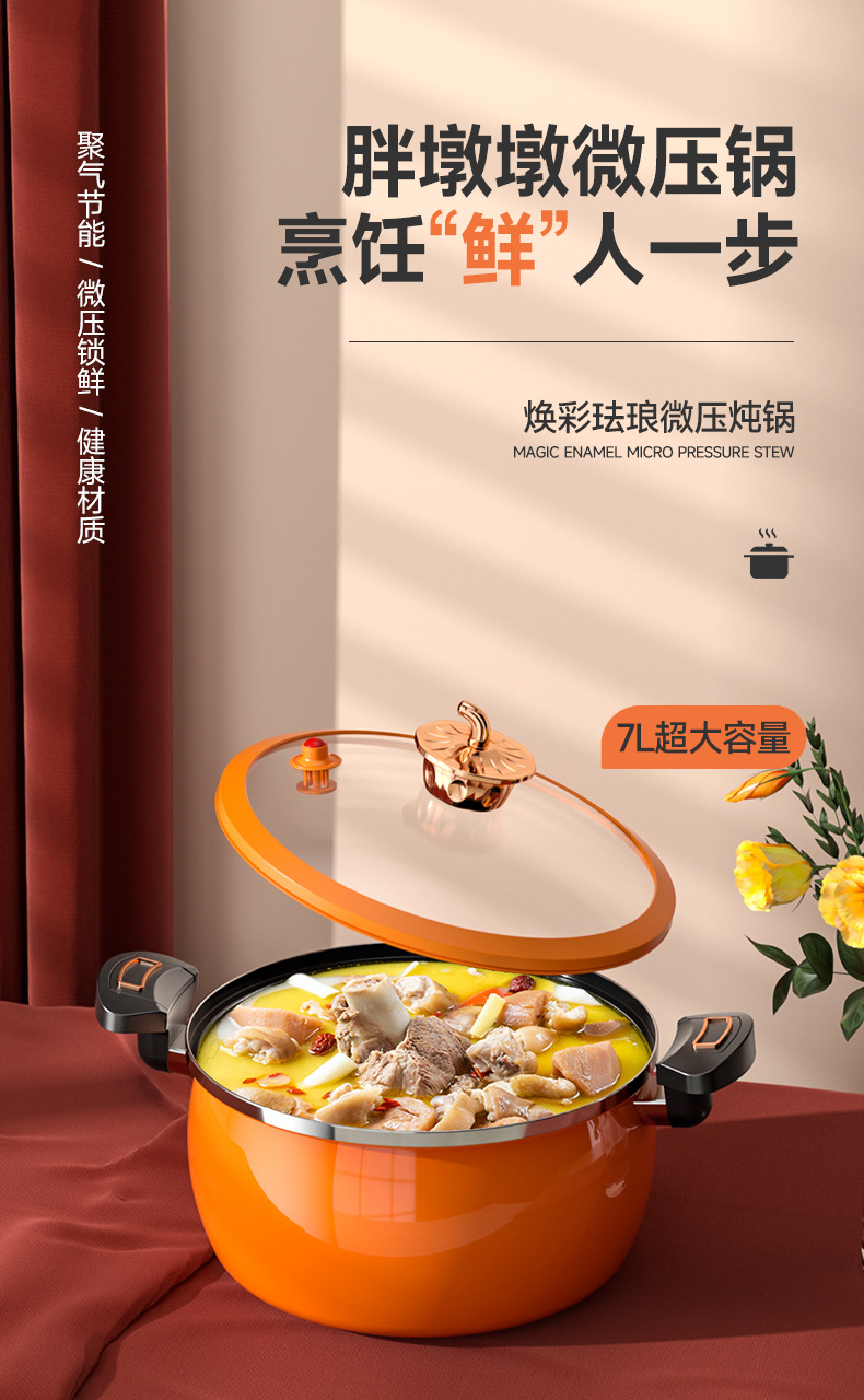 珐琅微压锅第三代家用焖烧锅不粘不锈大容量南瓜锅电磁炉燃气通用