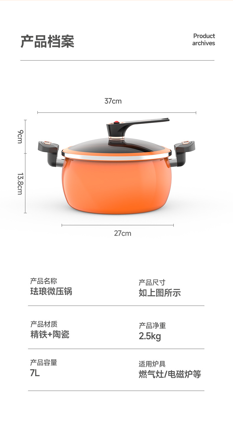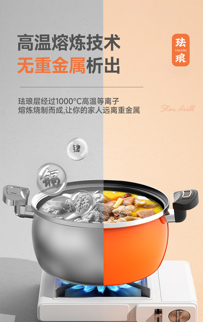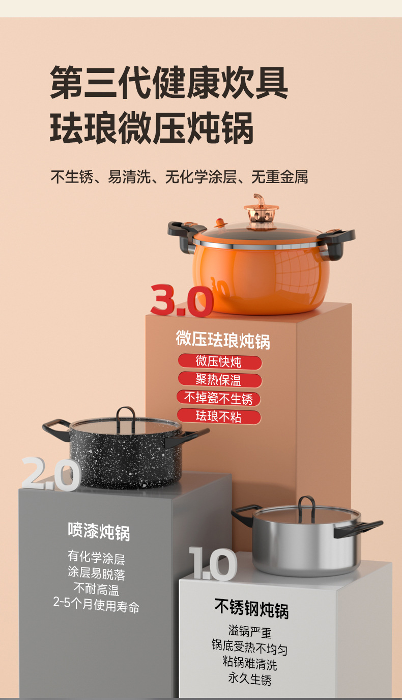珐琅微压锅第三代家用焖烧锅不粘不锈大容量南瓜锅电磁炉燃气通用