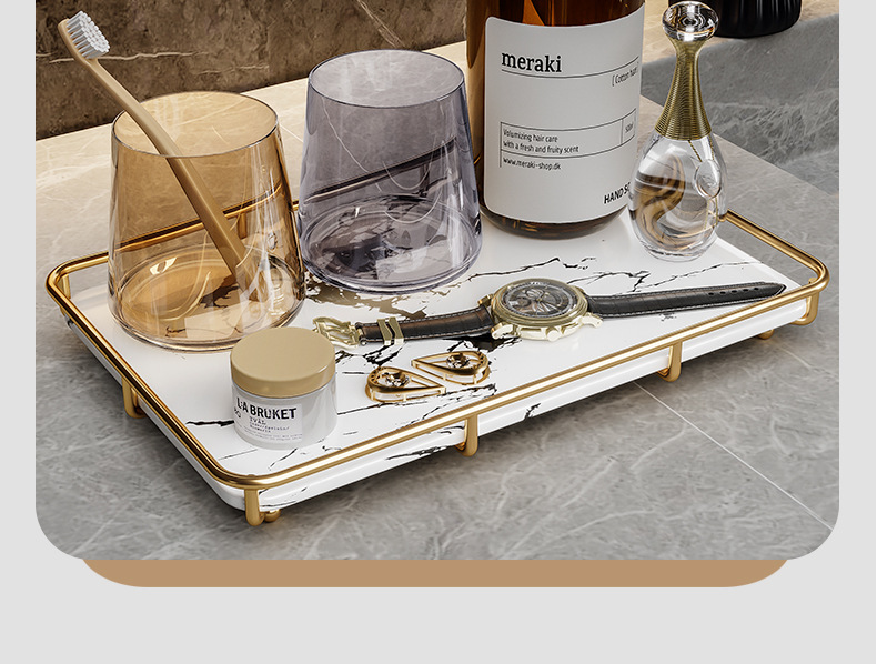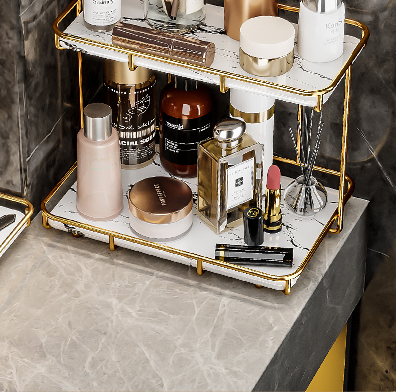 洗漱台梳妆化妆用品置物架卫生间浴室厕所台面轻奢风收纳洗手桌面