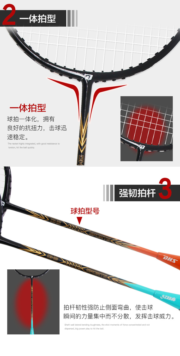 红双喜DHS 羽毛球拍对拍2支比赛进攻羽拍E-EG402 已穿线双拍