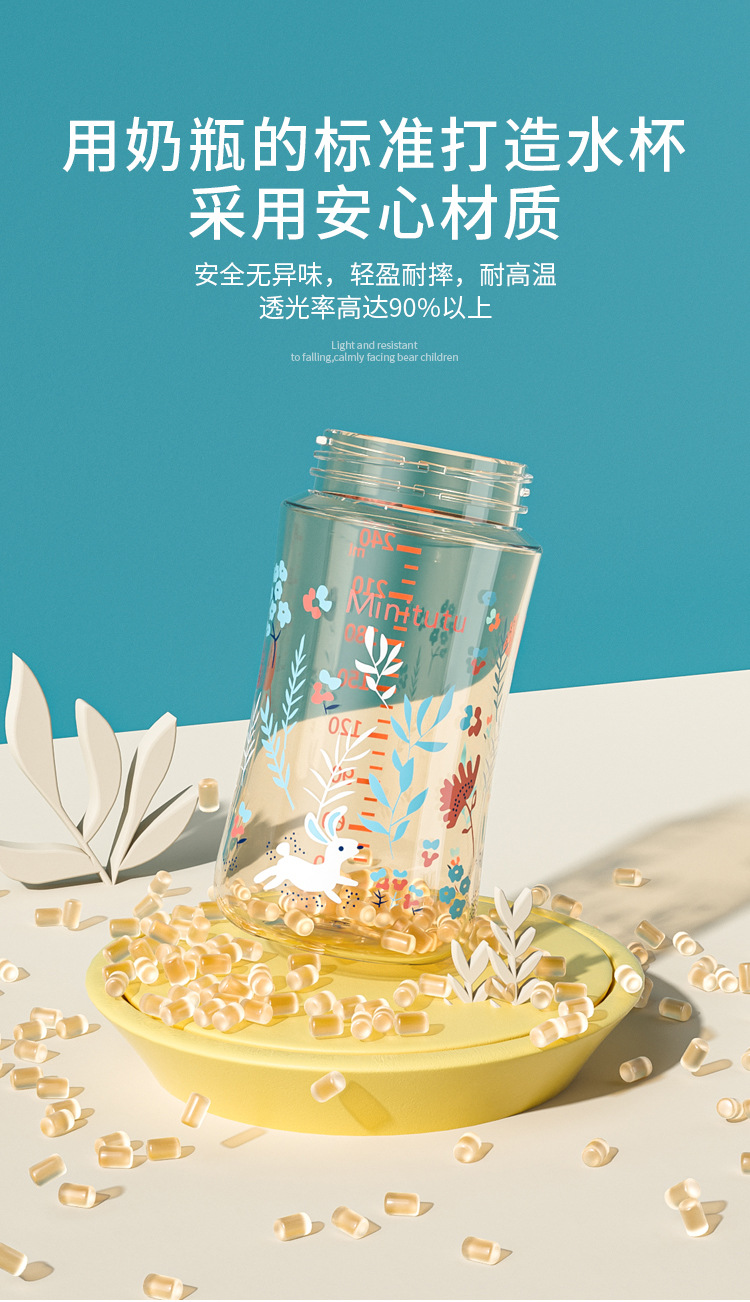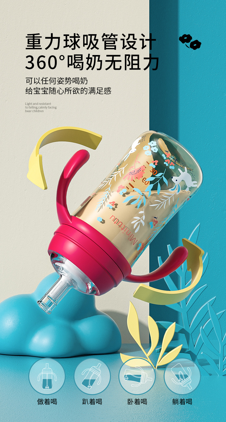 Minintutu宽口炫彩纳米PP奶瓶学饮杯吸水杯鸭嘴杯易上水奶瓶批发