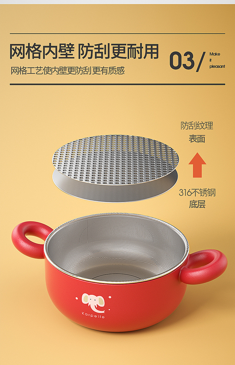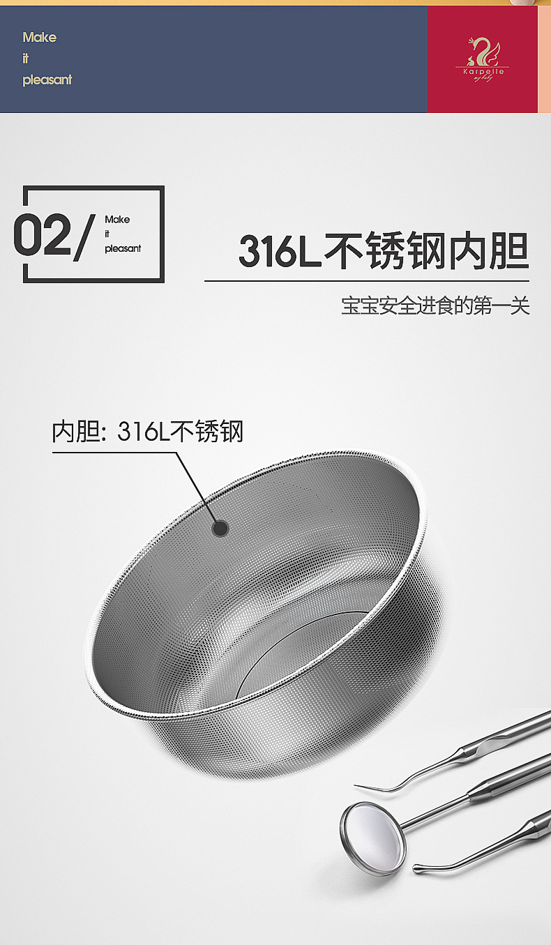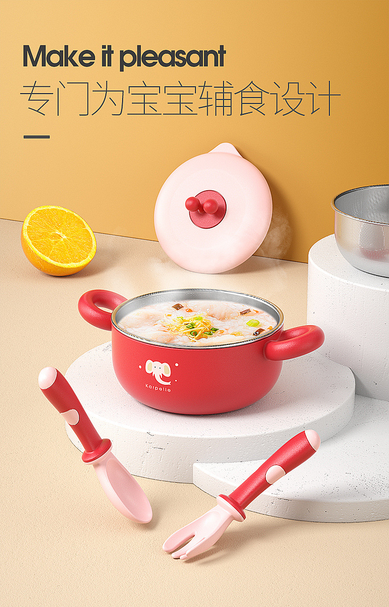 英国karpelle宝宝辅食碗儿童餐具吃饭零食碗不锈钢婴儿保温碗